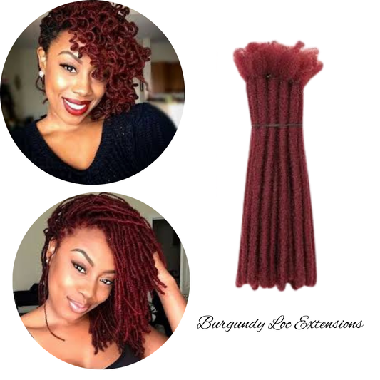 Burgundy Dreadlock Extensions, 100% human hair (10 locs per bundle), Color - Burgundy (sizes 0.4cm - 1cm)