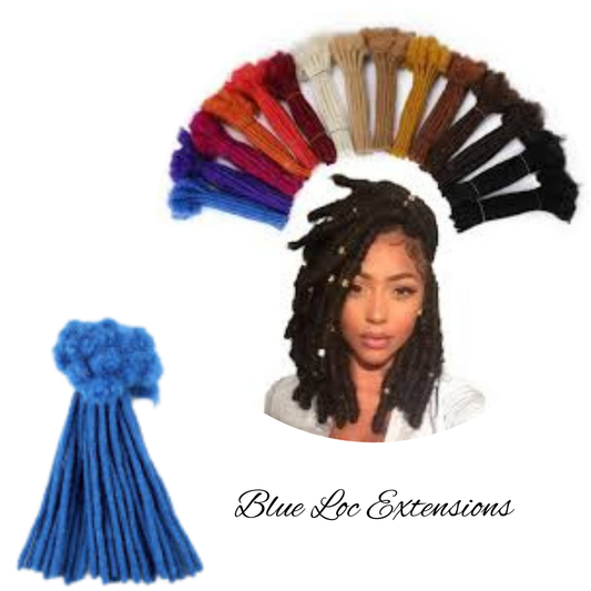 Blue Dreadlock Extensions, 100% human hair (10 locs per bundle), Color - Blue (sizes 0.4cm - 1cm)