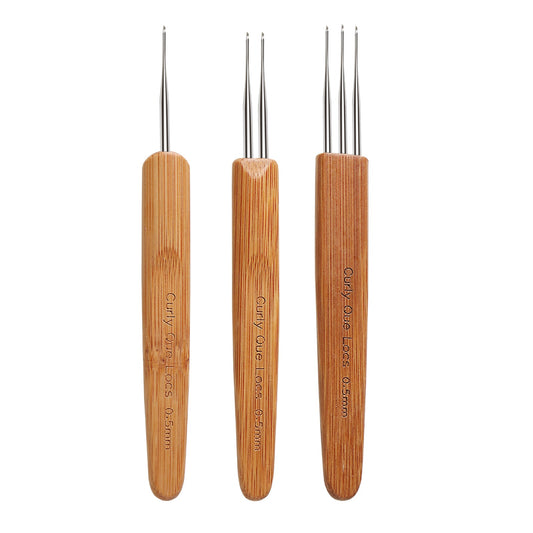 Single, Double, or Triple 0.5mm Crochet Dreadlock Tool with Bamboo Handle